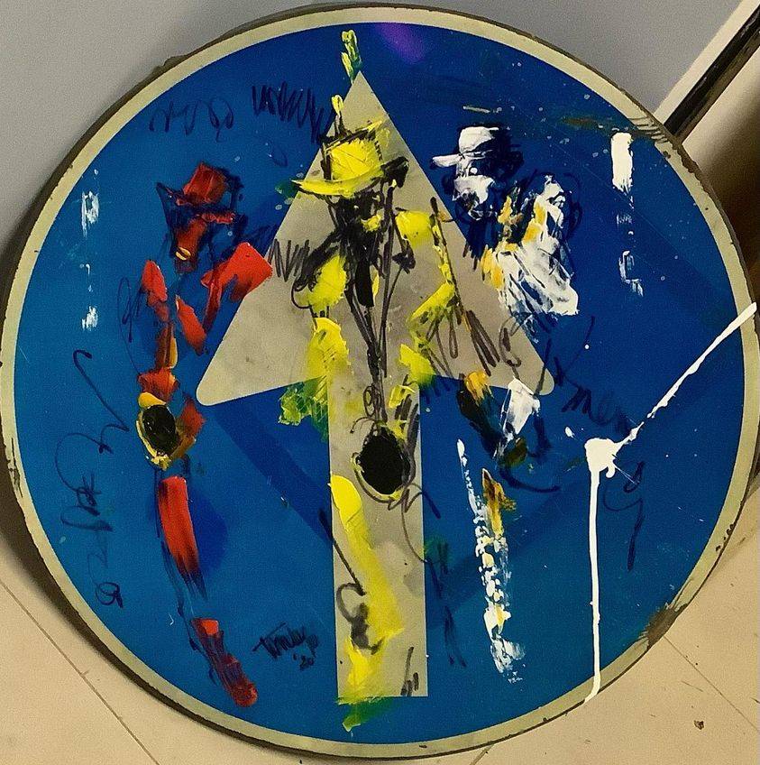 Direzione obbligata – acrilico su segnale stradale